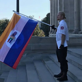 | Calfy at a Nazi rally on the steps of the Arkansas State Capitol representing the Aryan Nations. |